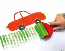 L’application au rouleau permet de créer de chouettes fonds, ou même des dessins entiers. Un plaisir sans fin pour les plus petits.