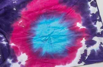 NL Pak de stof op één punt vast en draai in een spiraal. Zet de spiraal vast met rubberen ringen. Vervolgens verven, rubberen ringen verwijderen en na het drogen bevestigen volgens de instructies.