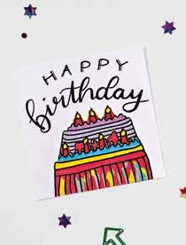 NL Leuke motieven, zoals katten, bomen of verjaardagstaarten, worden gemaakt door zorgvuldig stippen en lijnen op de kaart te plaatsen. De permanente marker kan worden gebruikt om de kaart verder te versieren zodra deze is opgedroogd.