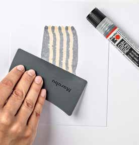 PL Piękny efekt passepartout można uzyskać za pomocą taśmy samoprzylepnej. Przymocuj papier do podłoża na krawędziach za pomocą taśmy samoprzylepnej przed raklem. Po wyschnięciu farby ostrożnie odklej taśmę samoprzylepną. Wskazówka: W przypadku wrażliwych powierzchni użyj taśmy samoprzylepnej i przetestuj ją wcześniej na papierze.