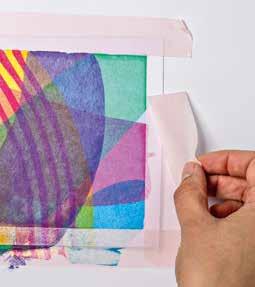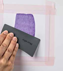 EN A beautiful passe-partout effect can be created by using adhesive tape. Before squeegeeing, attach the paper to the edges with adhesive tape. Once the paint has dried, carefully remove the adhesive tape. Tip: use adhesive tape for sensitive surfaces and test it on the paper beforehand.