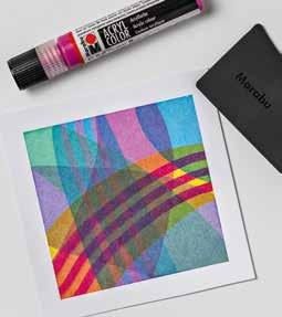 DE Ein toller Look ergibt sich, wenn verschiedene Farbtöne gleichzeitig gerakelt werden. Dazu einfach mehrere Punkte Acrylfarbe in verschiedenen Farben oder abwechselnd nebeneinander setzen und diese anschließend mit dem Rakel über das Papier ziehen.