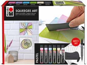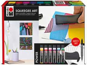 EN A great look is achieved when different colours are applied at the same time. Simply place several dots of acrylic paint in different colours or in alternating colours next to each other and then drag the squeegee across the paper.
