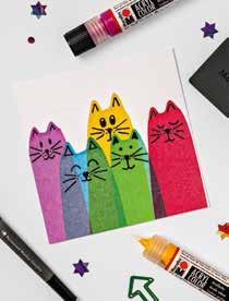 DE Lustige Motive, wie bspw. Katzen, Bäume oder Geburtstagstorten entstehen durch das gezielte Setzen von Punkten und Linien auf der Karte. Mit dem Permanent Marker lässt sich die Karte nach der Trocknung weiter verzieren.