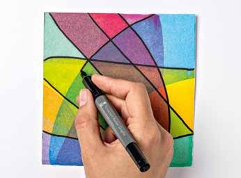 FR Des motifs amusants, tels que des chats, des arbres ou des gâteaux d‘anniversaire, sont créés en plaçant des points et des lignes de manière ciblée sur la carte. Après séchage, la carte peut être décorée avec un marqueur permanent.