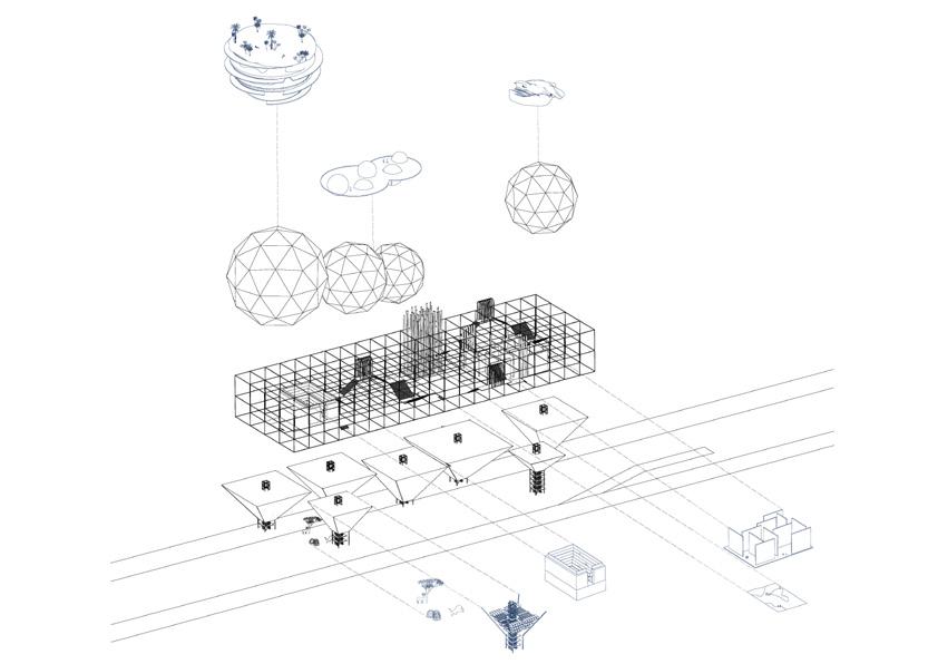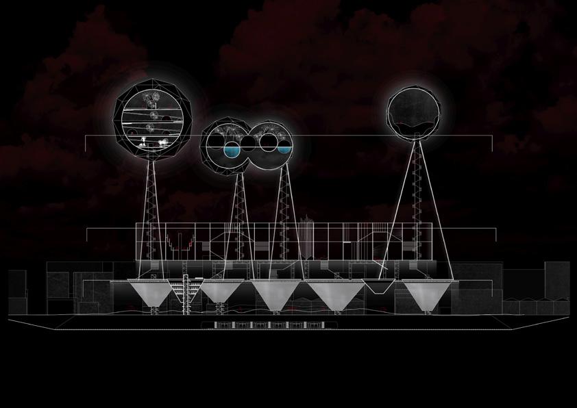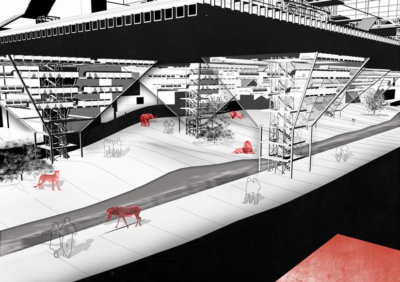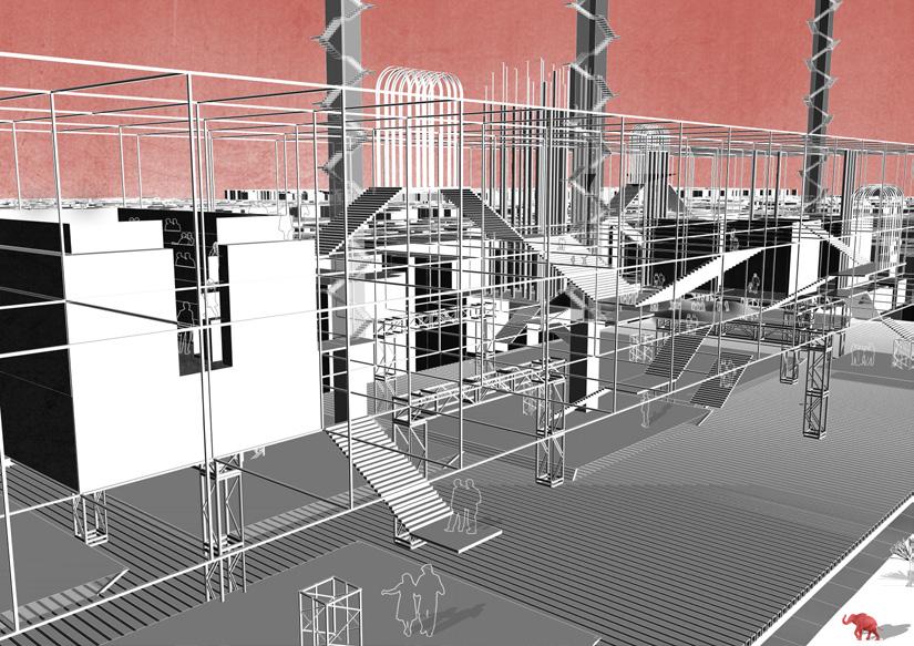 Based on the above research, a building structure is created, which is based on the excessive use and repetition of these elements. Respectively, the three levels are configurated, that, from top to bottom, serve functions such as work, education and habitation.