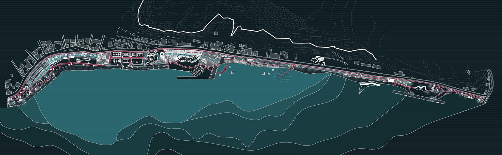 Firstly, on the urban beach with the re-use of the G.N.T.O. facilities, which now function as thalassotherapy center with: fitness suites, W.C. and chainging rooms, pools and hydromassage.