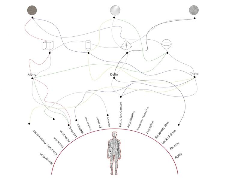 At the same time, multiple architectural elements, shapes and materials, can influence in a different way the human brain, producing specific brain waves.