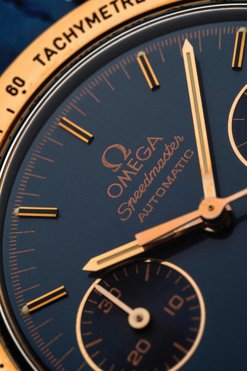 Dial blu con indici a bastone applicati.