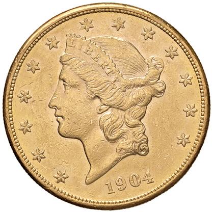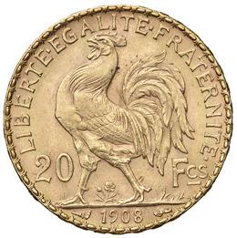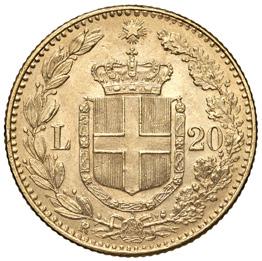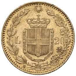 1192. venti lire 1903 progetto johnson pag. pr. 173 metallo dorato gr. 3,45 r fdc