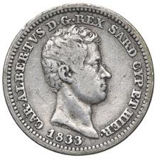 1187. cinquanta centesimi 1833 genova mir. 1162 a ag gr. 2,42 rrr