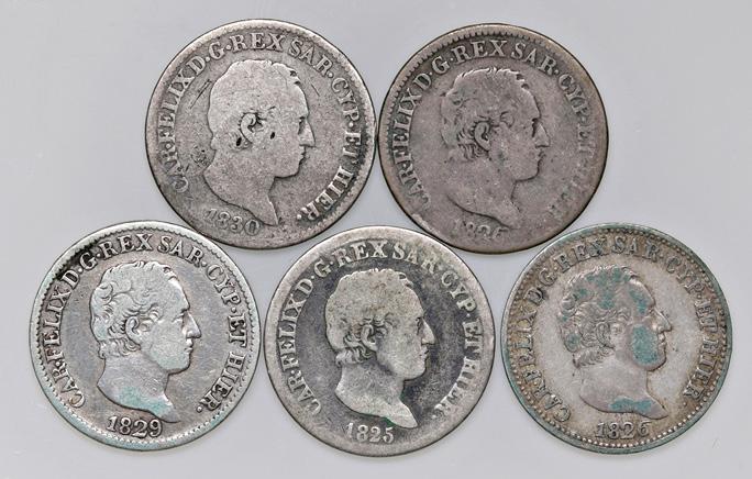 1181. lotto di 4 monete in ag lira 1827 genova e torino 1829 torino 1830 torino