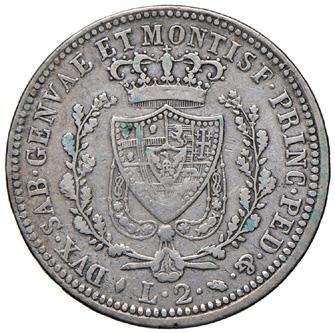due lire 1844 genova mir. 1160 j ag gr. 9,79 rr