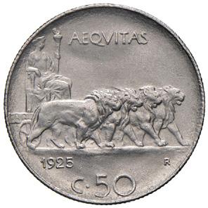 1211. cinquanta centesimi 1925 rigato mir. 1264 j ni gr. 5,98 lievissimo colpetto