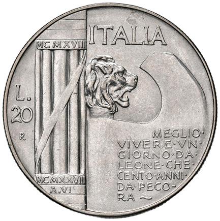1200. venti lire 1928 a vi mir.1241 c ag gr. 14,83