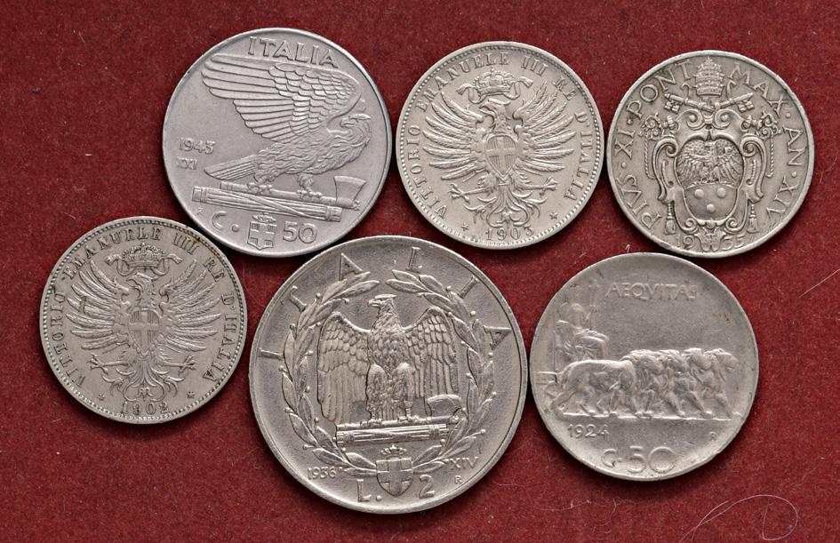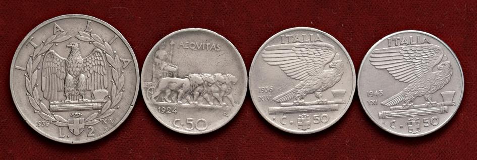1215. lotto di 3 monete in ni 2 lire 1923 – 1924 50 centesimi 1920 liscio