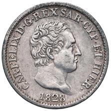 1180. lira 1828 genova e torino mir. 1148 j-k ag q mb 50