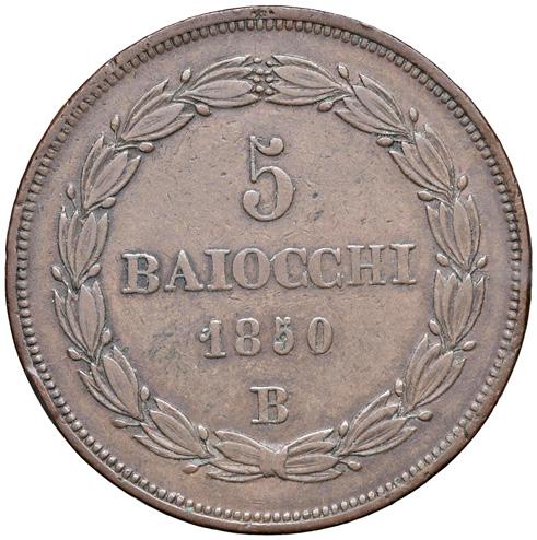 2265. cinque baiocchi 1852 a. vii mir. 3143/11 cu gr. 40,27 lievi schiacciature da conio