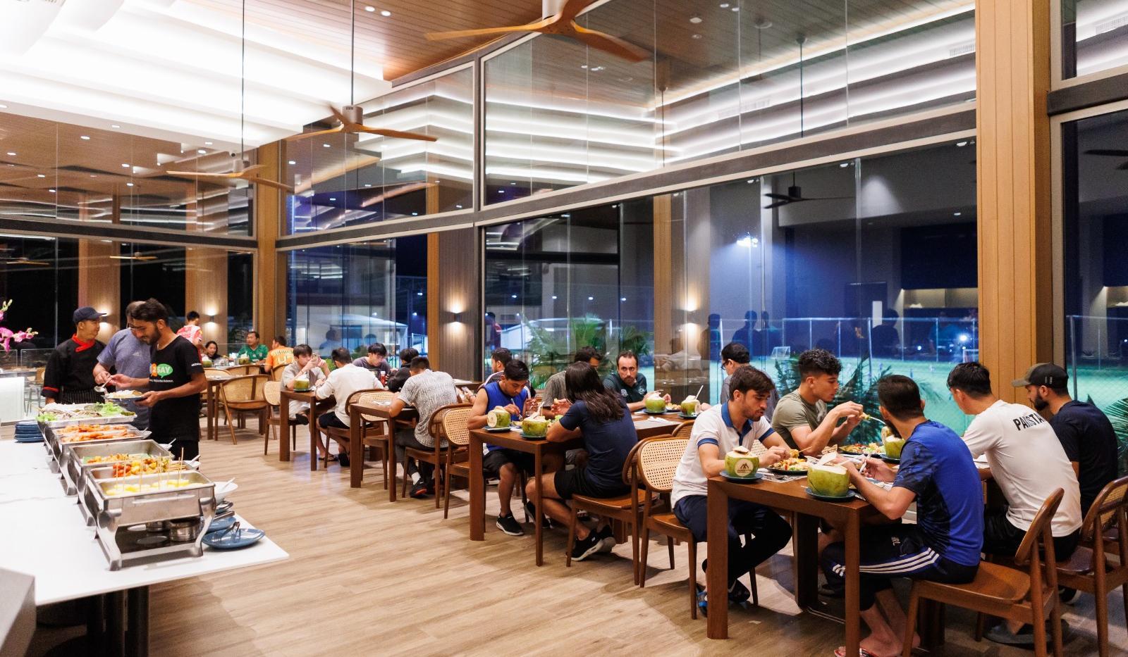 First class leisure facilities, well-equipped meeting rooms and classrooms, restaurant, sports bar and perfect accommodation . Our offerings include FIFA -standard artificial and natural grass beachside pitches, 800 sqm Fitness and Hight Performance Center , complete with an ice bath, sauna, swimming pool and access to Thailand ’s stunning natural beauty. Whether you're hosting a sports or corporate event, our exceptional facilities and breathtaking surroundings provide the perfect setting .