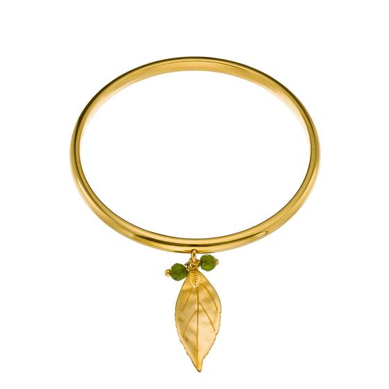24K GOLD PLATED BRASS BANGLE BRACELET WITH LEAF PENDANT AND GREEN FACETED AGATE STONES WHP: 19,00€