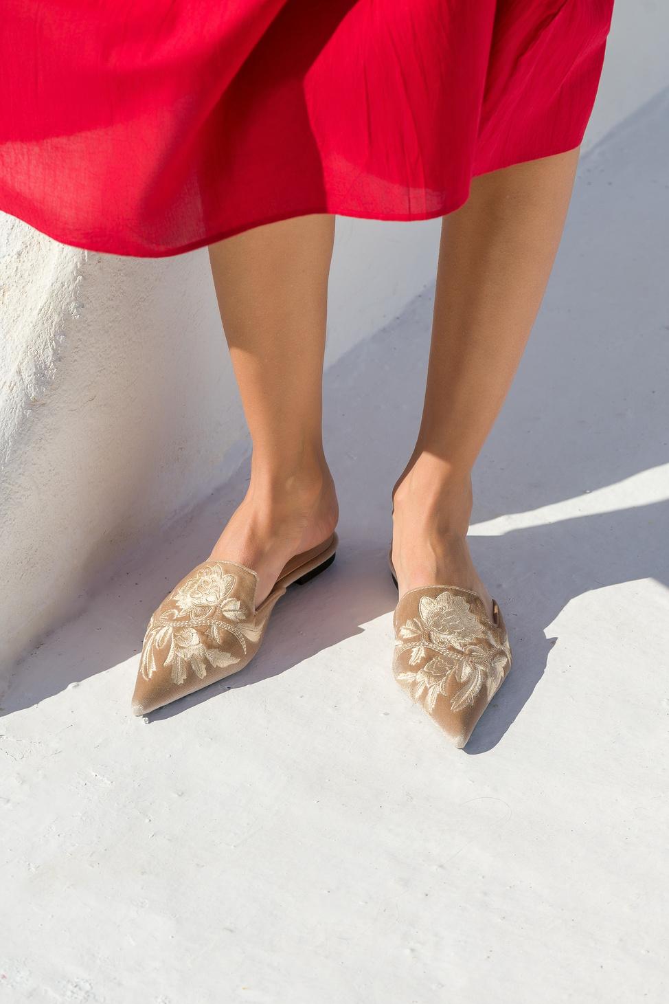 Fabricmuleswith leathertassels. Leather insoles&soles