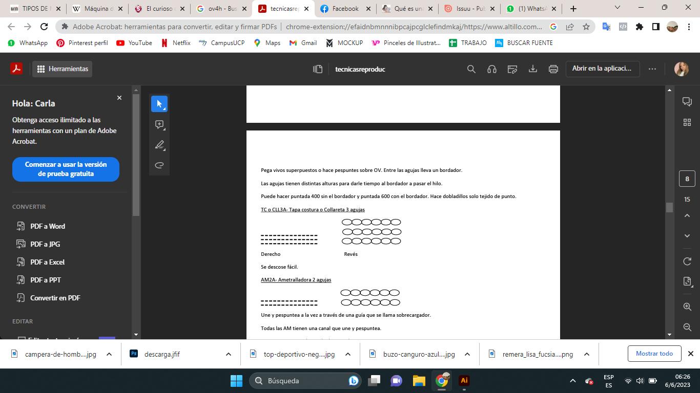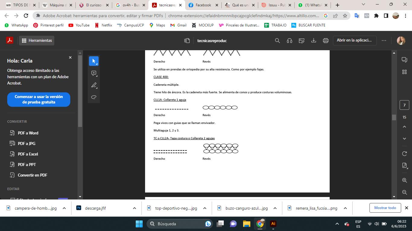 - OVERLOCK 5 HILOS: Hace lo mismo que la de 4 hilos pero además ya pone la puntada de seguridad para coser tela tejida.