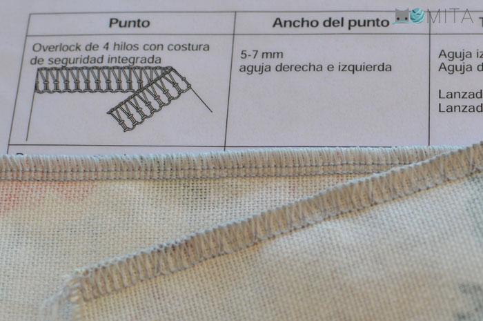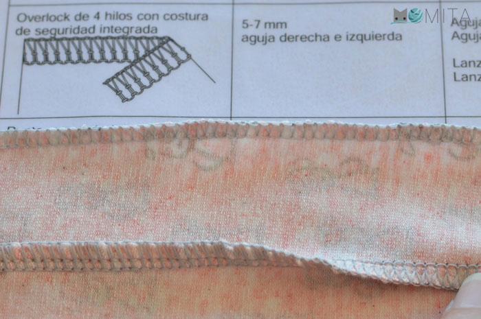 NOTA: La puntada de overlock se emplea habitualmente en la industria de confección tanto para coser prendas de plana como de punto. La overlock se caracteriza por ser un tipo de puntada que pule el canto de la costura al mismo tiempo que une el tejido. Para hacerlo corta el canto del tejido al mismo tiempo lo sobrehila.