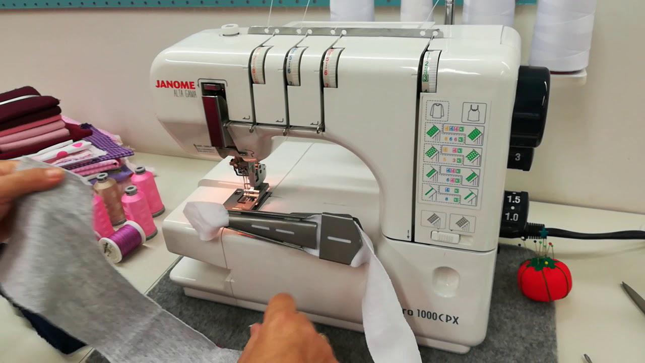 Si quieres coser tela tejida a 4 hilos lo más posible es que vaya cediendo la trama y quedando como en la foto. Para eso necesitas pasar antes un pespunte a máquina plana o utilizar la puntada 5 hilos, como se muetra a continuacion: