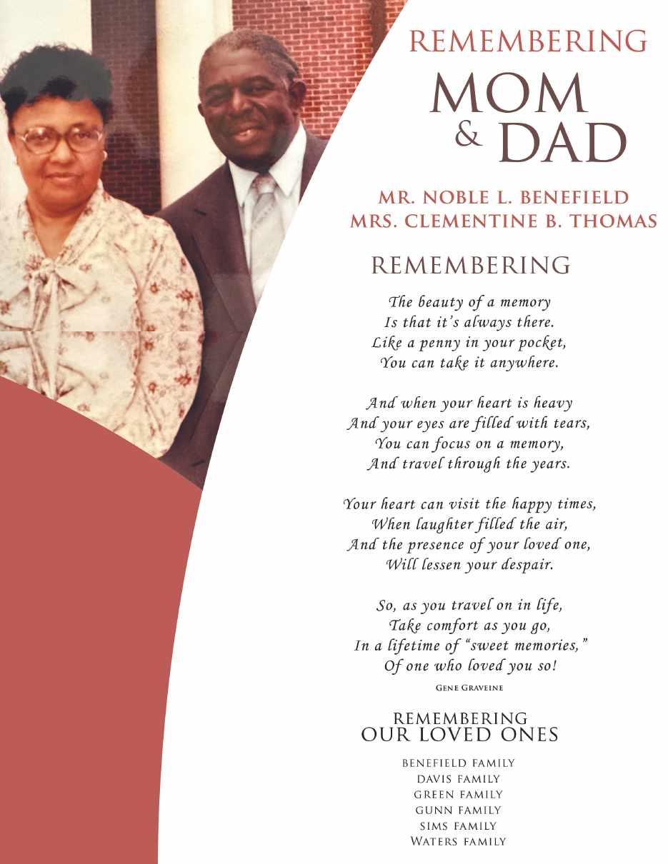 TABLE OF CONTENTS MemorialsAndFamilyTributes JohnnieCrawfordNeely-FromtheNieces.......25 JohnnieCrawfordNeely–FromtheFamily.......26 BenefieldMemorial..............................................27 DavisMemorial.....................................................28 Tribble,WareandMartinFamily........................29 EmmaMaeBolden................................................30 PhyllisThomas......................................................31 PrinniesMoore.....................................................32 FarmerFamily......................................................33 GaryJonesFamily................................................34 SimsFamily..........................................................35 ArleenTaylorLaster...........................................36 Dr.SoniaSharmin...............................................37 PierceFamily......................................................38 EarnestineThurman.........................................39 AcknowledgmentsFromTheBusinessCommunity TheBlandClinic 2ThePointTheologicalMedia Dawson'sMortuary RambeauReality PCVirusBusters OurPatrons xxx