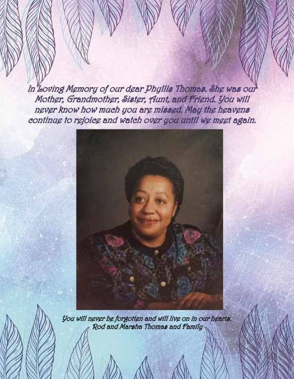 Listed In Alphabetical Order From Gwen Manzy Richard Nash Angela Nelson Yolanda R. Owens Dr. Jonathan Page Minister Lisa Phillips Anita Pratt Dr. Neda Roby Valeria Scott Karen B. Shelton Pat Sikes Rhondolyn Jones Smith Patrons 53