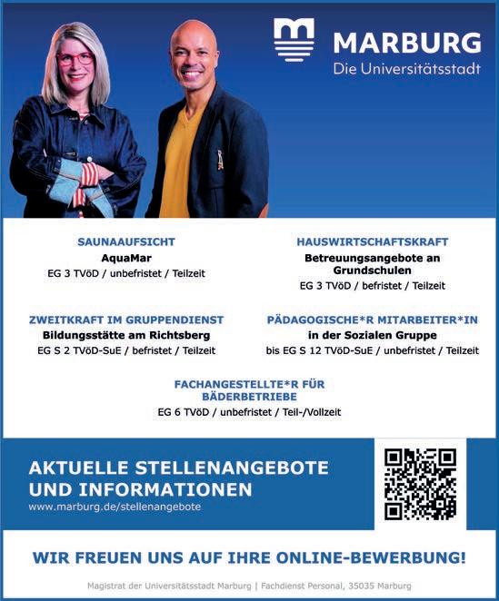 l Wir sind ein ruhiges, aufgeschlossenes Paar und suchen eine 2- bis 3-Zimmer-Wohnung mit mind. 50 qm in Marburg oder Umgebung mit guter Busanbindung zum Südviertel. Mein Name ist Hannah, ich bin 27 Jahre alt und seit 2024 Beamtenanwärterin beim Hessischen Staatsarchiv Marburg. Davor habe ich meinen Masterabschluss in Geschichtswissenschaften an der Universität Gießen gemacht. Meine Freizeit verbringe ich gerne mit Lesen und Sport. Mein Partner Adrian, 33 Jahre, ist kaufmännischer Angestellter bei den Karl-Meyer Umweltdiensten in Fernwald. In seiner Freizeit macht er Musik und kocht leidenschaftlich. Wir sind Nichtraucher, halten keine Haustiere und wünschen uns ein gepflegtes, ruhiges Wohnumfeld. Die monatliche Warmmiete sollte 900 Euro nicht überschreiten. Wir freuen uns sehr über Angebote unter 06404/6587383 oder unter hannah.behling@t-online.de