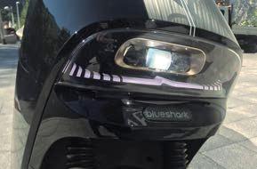 Més enllà de la informació bàsica referent a l’escúter, és a dir, in dicadors de llums, intermitents, velocitat..etc, el Blueshark inclou una dotació espectacular que ni els escúters més alts de gamma inclouen. I si us penseu que exagerem, aquí va tot el que hi tro bareu: alarma, arrencada per mitjà d’empremta digital, assistent d’aparcament amb marxa enrere, càmera de visió del davant i del darrere, sistema de càmera sincronitzada amb els intermitents per visualitzar la maniobra mentre girem, altaveus per poder es coltar la mùsica des del mòbil (sincronitzat amb l’app específca d’usuari), control de creuer i il·luminació de l’entorn de la moto per veure la zona quan has aparcat. Finalment esmentar que l’es cúter disposa de tres nivells de velocitat màxima, així com un sistema anomenat ‘Turbo’ que et permet disposar de la màxima potència quan arrenques, per exemple d’un semàfor.