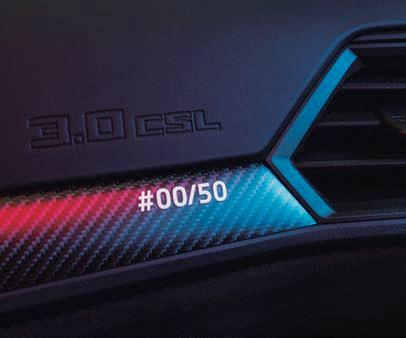 més detalls que miren al passat. Alguns exemples els tenim en la reixeta amb forma de diamant, la graella amb els característics ronyons de BMW i en les preses d’aire del faldó davanter. Aquests detalls combinats amb recursos actuals, com els fars BMW Laser Light en color groc, derivats de l’M4 GT3 de carreres, aporten un toc molt especial al conjunt.