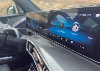 El sistema d’infoentreteniment MBUX ve de sèrie, però sent un model elèctric, el sistema afegeix un seguit de funcions i pantalles específiques per poder consultar i manipular tot el que té a veure amb la mobilitat elèctrica del cotxe: l’estat de la bateria, els fluxos d’energia, els punts de recàrrega més propers...