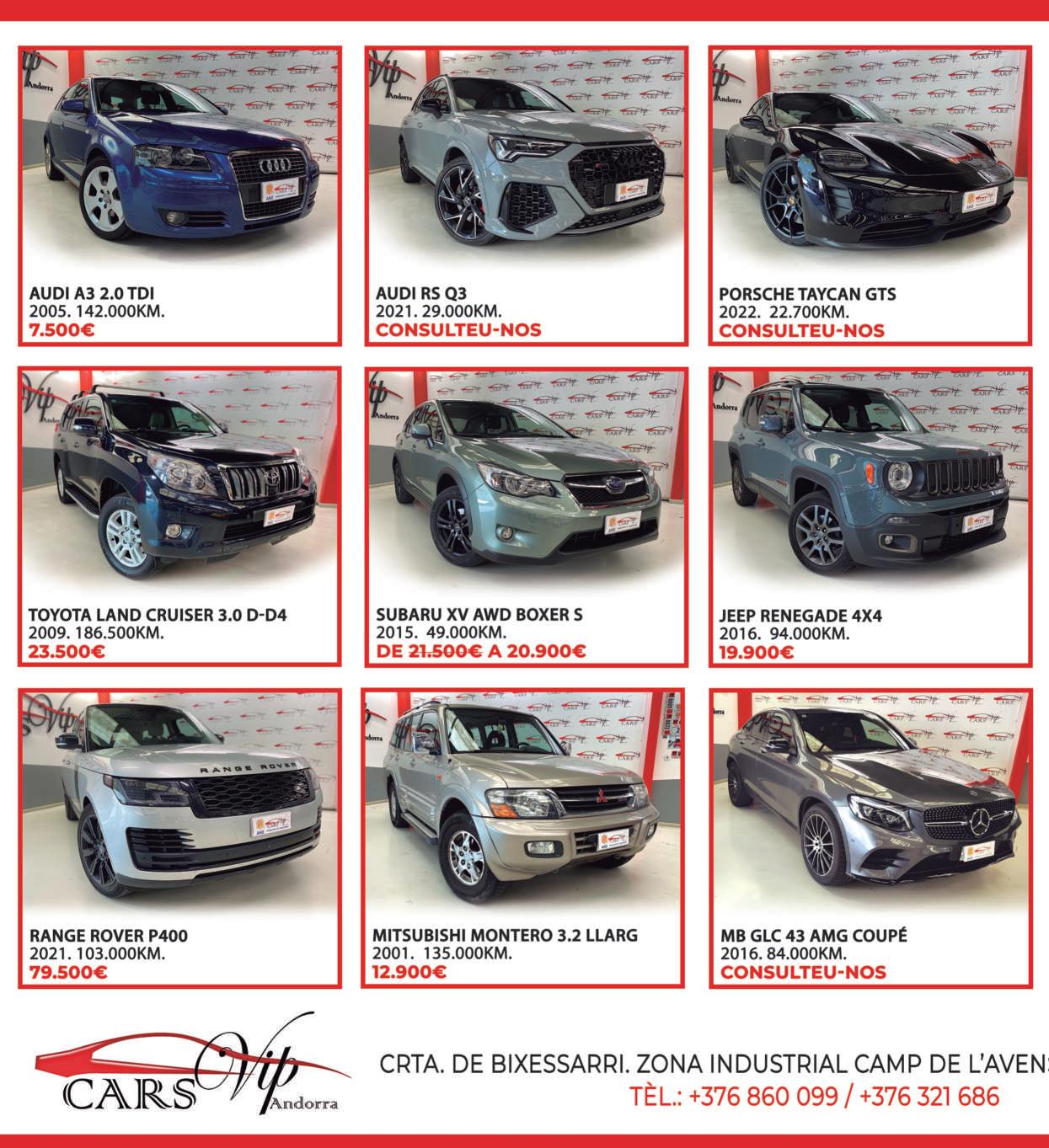 MB S 500 BMW X3 3.0D XDRIVE FORD B-MAX L. ROVER FREE LANDER 2 2.2 TD4 E 2008. 20.800€ 2017. 57.500KM. 24.800€ DE 23.800€ A 21.500€ 2015. 9.900€ 2009. 10.800€ KIA SOUL 100% ELÈCTRIC MB GLA 250 4-MÀTIC CDI RENAULT KOLEOS AUTO DCI FIAT PANDA 1.2 4X4 2015. 15.800€ 2010. 73.000KM. 7.300€ BMW X3 20D XDRIVE 2012. CONSULTEU-NOS 2000. 117.500KM. 9.800€ ABARTH 500 1.4 T-JET BMW X6 M50 D 2010. CONSULTEU-NOS 2014. 38.800€ 2010. 14.800€ 2016. 11.000€ BMW X1 XDRIVE 23D MB SLK320 EDICIÓ SIGNUM 47 2018. 32.800€ VOLKSWAGEN GOLF 2.0 GTI