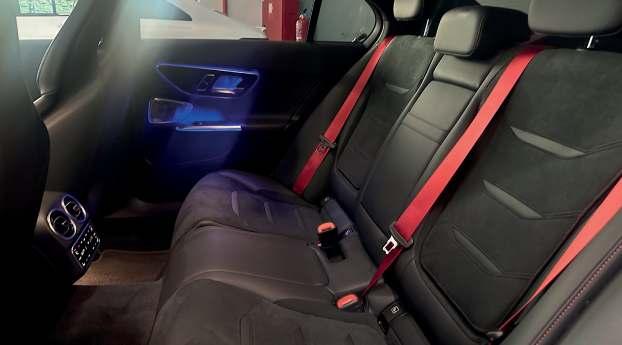Ampli i molt comfortable per a quatre persones, els interiors inclouen detalls molt ‘racing’, com per exemple els cinturons de seguretat de color vermell, els seients AMG, el volant AMG Performance i un gran sostre elèctric.