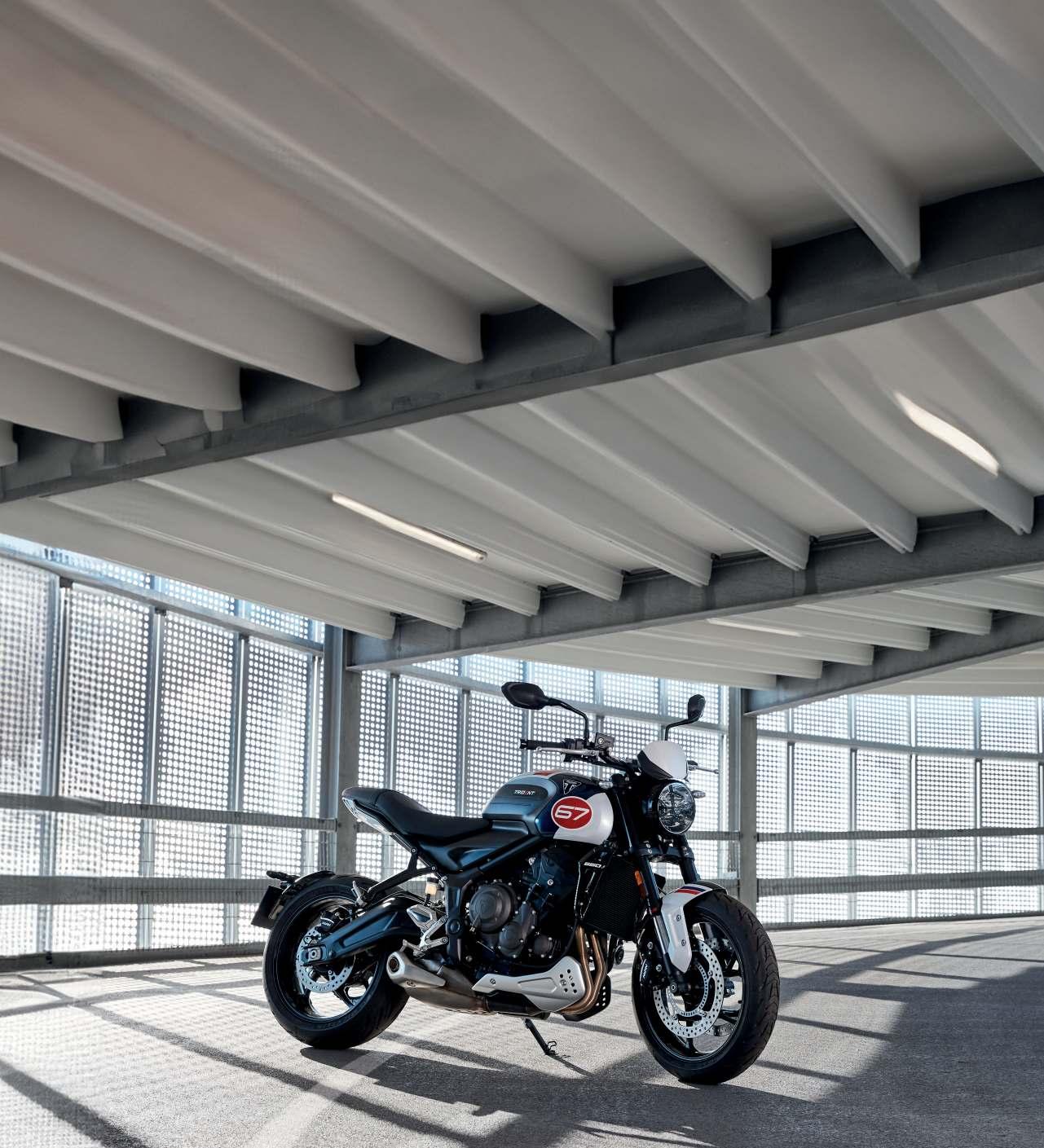 Quan parlem de la Trident 660 Triple Tribute, parlem d’una moto seductora, per extremada, per la seva aparença salvatge i per estar equipada de sèrie amb molta tecnologia, començant pel Triumph Shift-Assist, un sistema d’assistència al canvi per pujar i baixar les marxes sense fer anar l’embragatge.