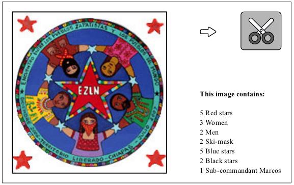 The last section presents the methodology used to catalogue and process all the images found in the Zapatistas websites. The presentation of the methodological steps is followed by a first explanation of the results of the quantitative analysis. In brief, the approach led to find that the pasamontañas, the Subcomandante Marcos, and the red star, were the most recurrently used images in the websites