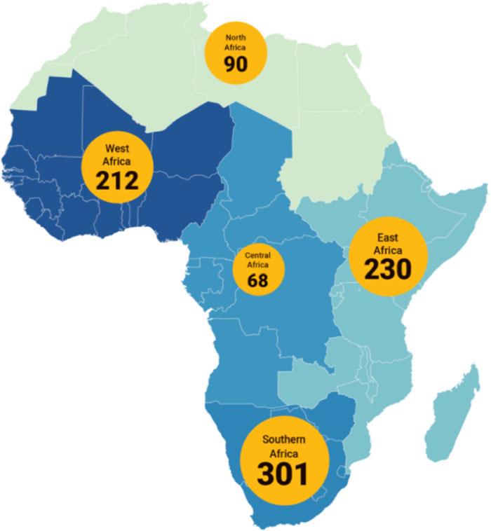 Figure2. Mapofprivateequity,venturecapitalandassetmanagementfirmsinAfricabyregion.