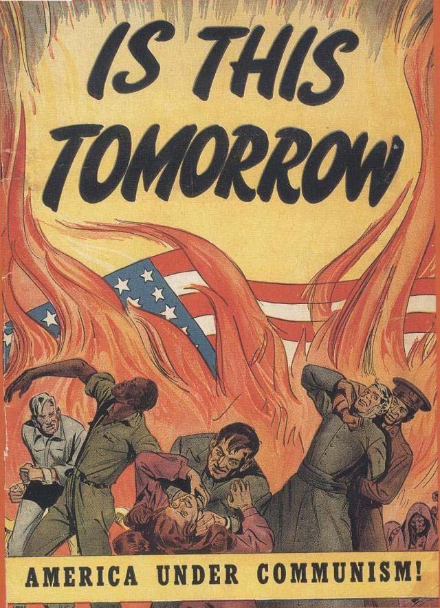 “Is This Tomorrow,” image 2.1, was published by the Catechetical Guild Educational Society of St. Paul, Minnesota in 1947. This image is the cover of a comic book created by the society to depict how they believed the United States would be should it fall into the clutches of communism. Over 4 million copies were published (Barson and Heller, 156).