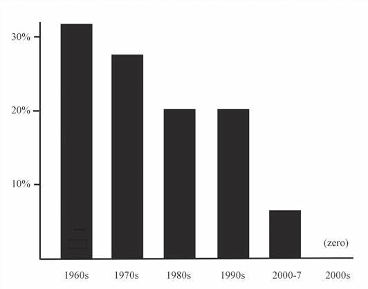 1960s 1970s 1980s 1990s 2000-7 2000s 30% 20% 10%