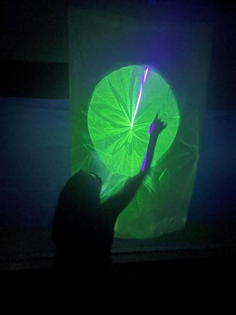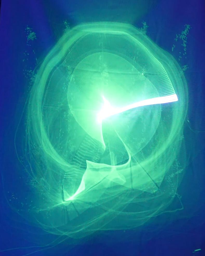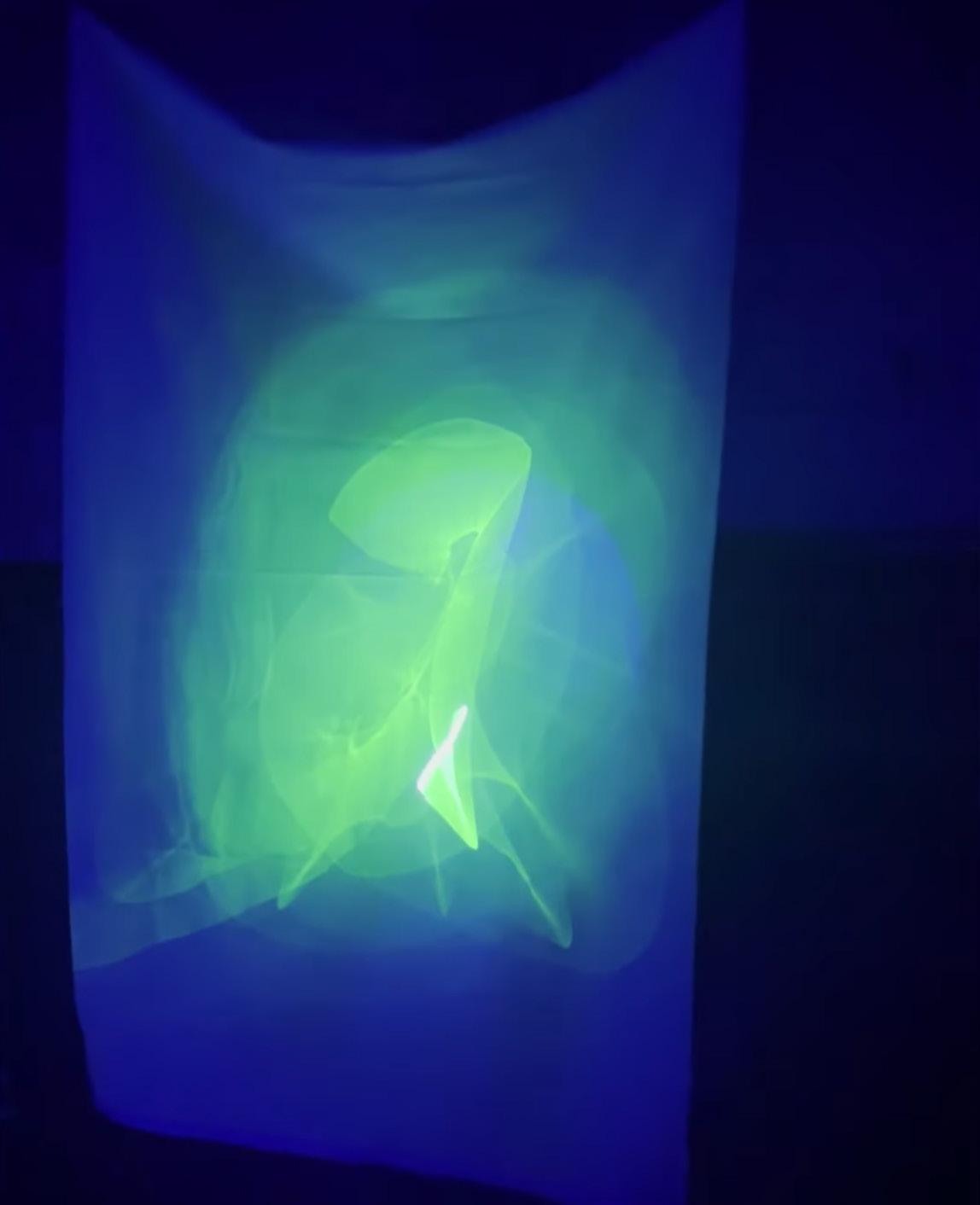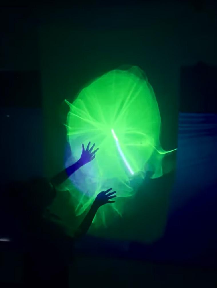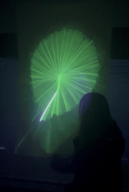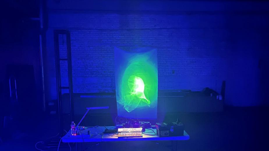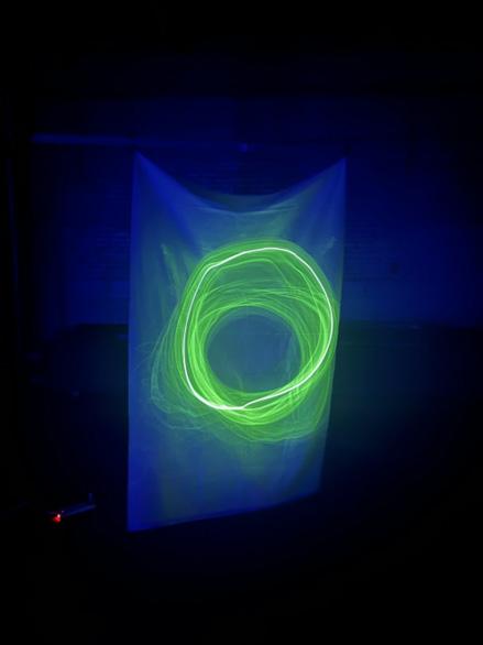 Laser, Galvonometer, TouchDesigner, Phosphorescent Fabric, Table Fan