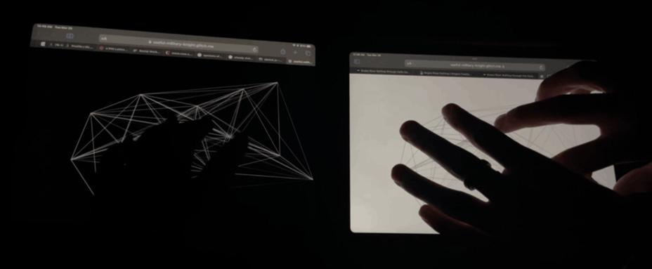 This piece began from the loss of connection with loved ones during quarantine. No matter how many hours I spent on FaceTime and on Zoom dinners, it could not fill this deep sense of loneliness. I tried to get specific: was it the lack of eye contact, of body language, physical touch, or the knowledge that you could always disconnect? The intimacy of connection was missing, and only the lack of connection made me fully aware of its importance. What We Share allows users to feel a sense of connection by physically touching the same virtual space. Linking fingers through the Share interface creates a sense of closeness with others, yet the impassible barrier of the screen remains.