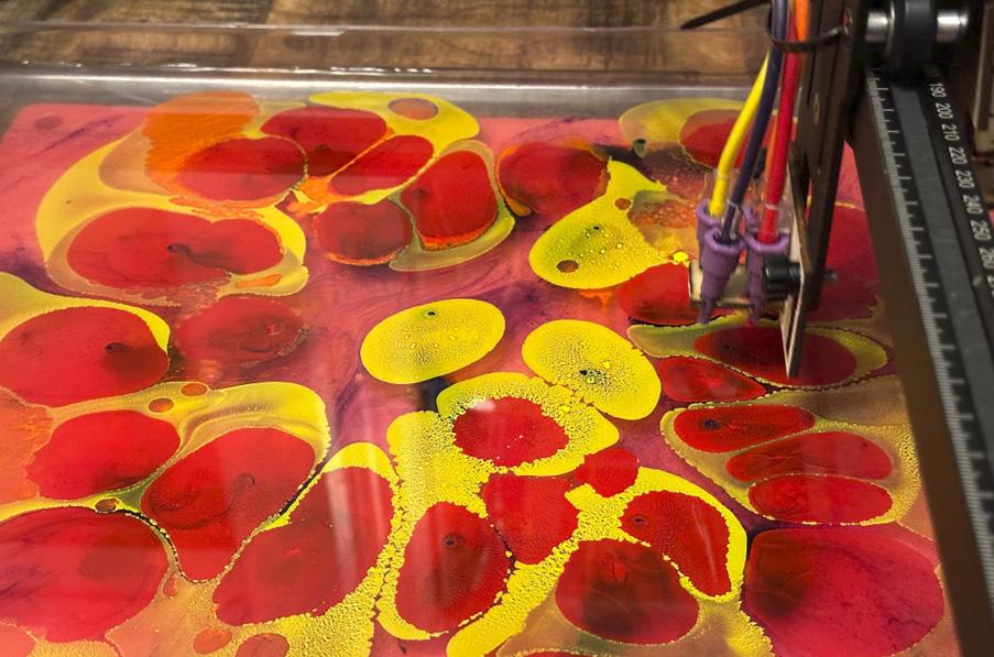 Demonstration of the Paper Marbling Machine generating a spiral-radial pattern (URL: https://youtu.be/8Up5kAhq0gQ)