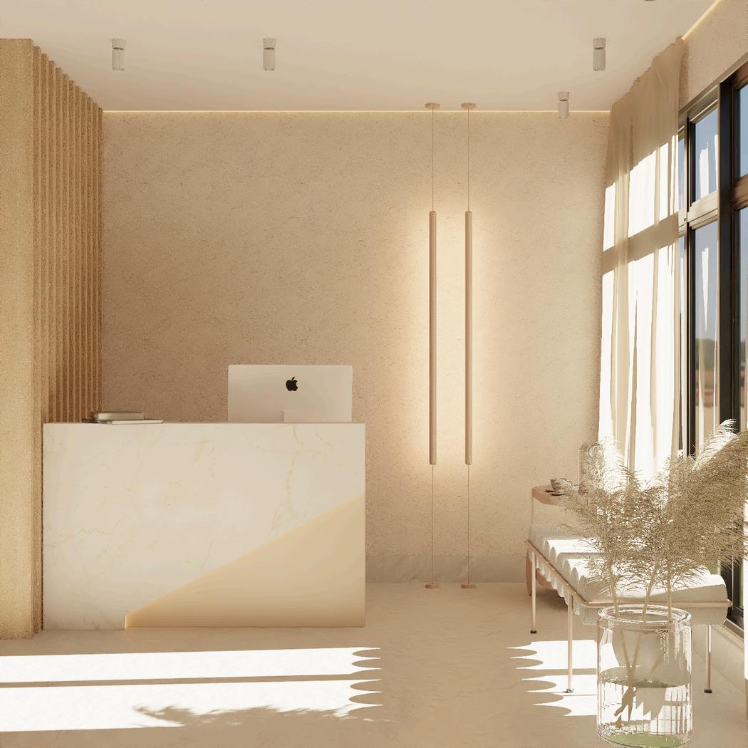 O projeto resultou em uma recepção moderna, elegante e convidativa, proporcionando um ambiente que reflete a essência da clínica e transmite bem-estar aos pacientes.