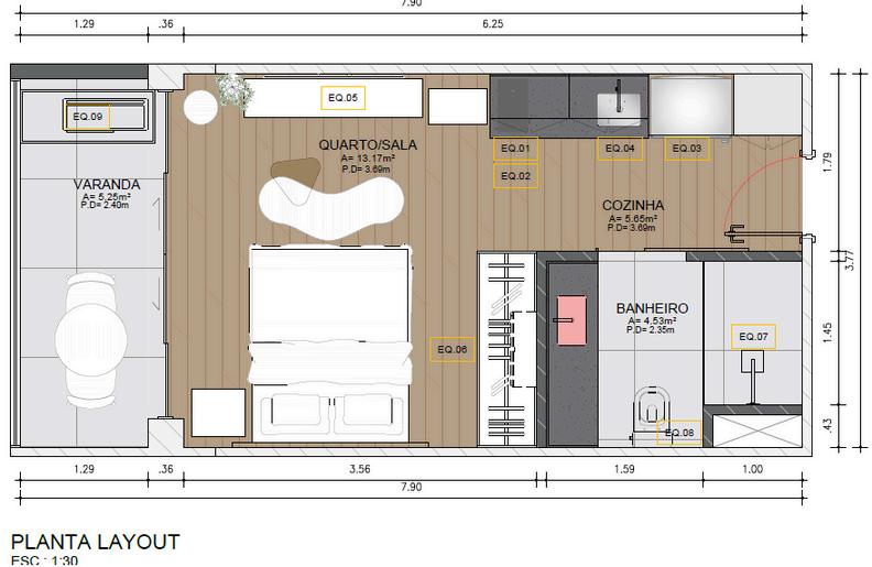 O cliente adquiriu um estúdio PCD , que possuía uma extensão maior devido às exigências de acessibilidade. No entanto, seu objetivo era transformar o espaço em um ambiente mais convidativo para hospedagem, sem comprometer o conforto e a circulação.