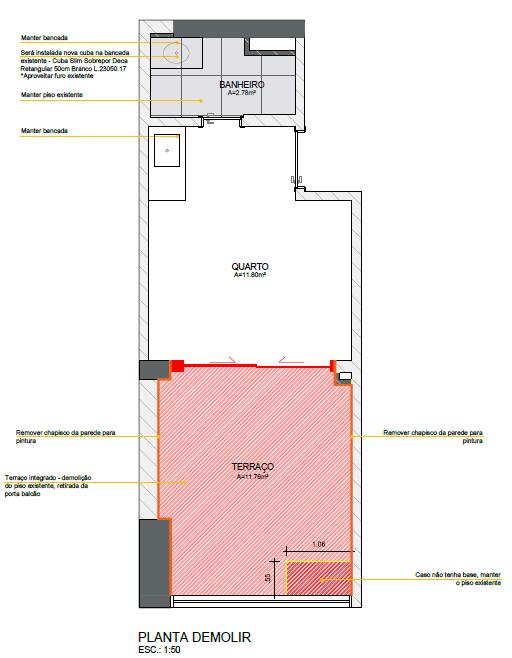 ✔ Redução do banheiro: Para ampliar a área útil do estúdio, demolimos uma parede e encurtamos o banheiro, deixando de ser acessível, mas garantindo um layout mais funcional e integrado.