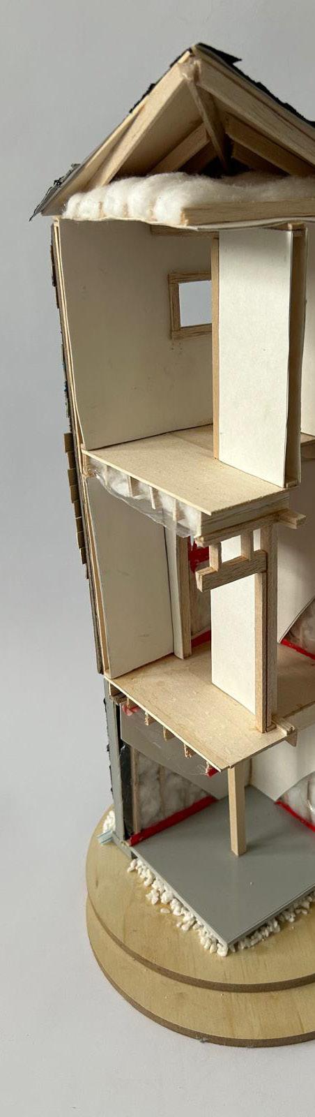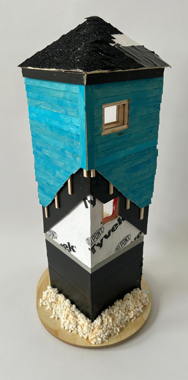 This model was the final assignment for my first studio project at GBC done in groups of 2. We were given only the foundation wall to start with, and had to build the rest of the house through other materials we found. We had to make sure that all the connections/details are exposed including the roof detail, window lintel detail, foundation walll to first floor connection, wall assembly, and all of it’s other intricacies.