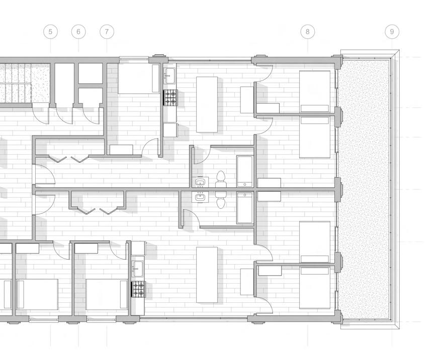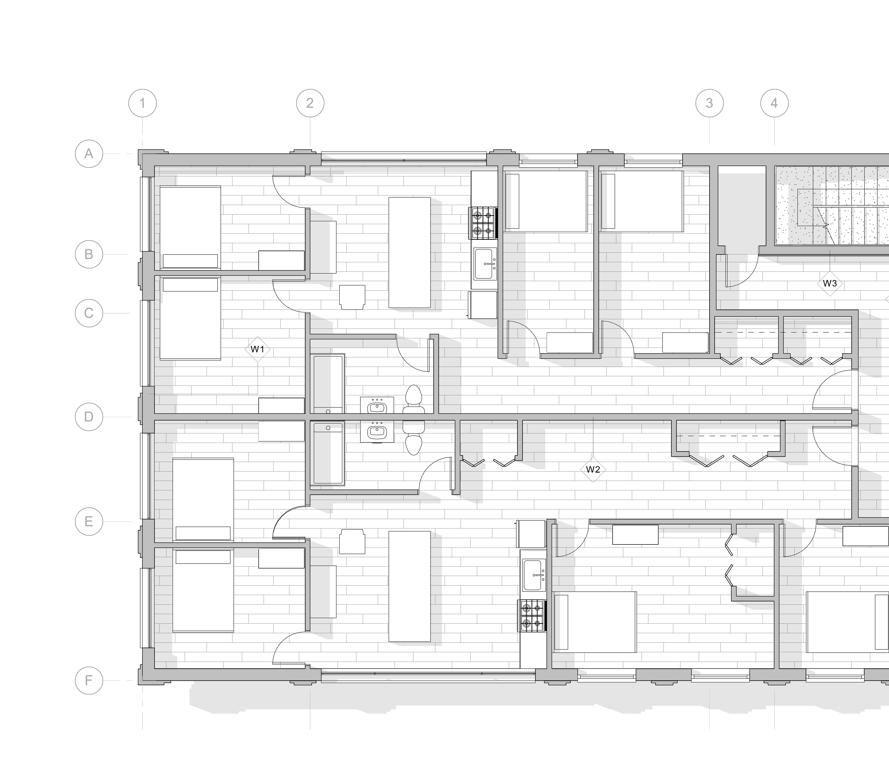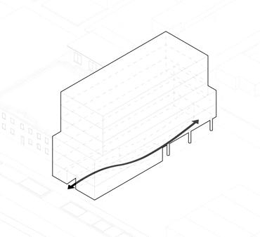 This is project aims at creating a housing typology for a six storey building, with the condition that it only has a single stair shaft. As explored in the following pages, this typology could ameloriate affordable housing because of it’s smaller lot size, it’s greater room sizes, and the riddance of unnecessary corridor space. It’s spatially efficient. It can constructed on any lot(s) that connect to two roads, drive community engagement, and respect the aesthic appeal of it’s architectural context. This entire project was done individually out of personal interest in the competition, and it took three weeks to complete.