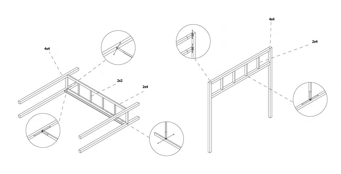After brainstorming for a few days, we then went on to make working drawings so that we could cut the wood into the required framing members.
